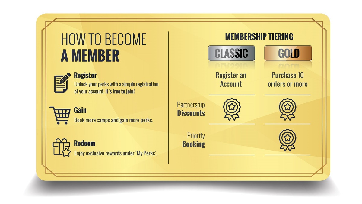 If you are under the Gold Tier, a priority booking email will be sent to you where you can get first dips on bookings and secure your camp slots!